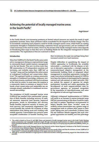 Govan H. 2009. SPC Traditional Marine Resource Management and Knowledge Information Bulletin #25