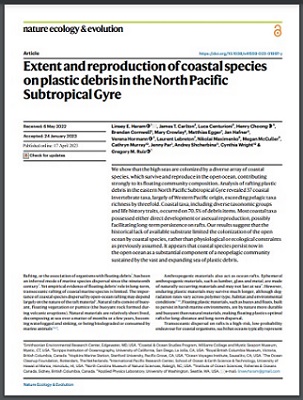 We show that the high seas are colonized by a diverse array of coastal species, which survive and reproduce in the open ocean, contributing strongly to its foating community composition. Analysis of rafting plastic debris in the eastern North Pacifc Subtropical Gyre revealed 37 coastal invertebrate taxa, largely of Western Pacifc origin, exceeding pelagic taxa richness by threefold. Coastal taxa, including diverse taxonomic groups and life history traits, occurred on 70.5% of debris items. Most coastal taxa possessed either direct development or asexual reproduction, possibly facilitating long-term persistence on rafts. Our results suggest that the historical lack of available substrate limited the colonization of the open ocean by coastal species, rather than physiological or ecological constraints as previously assumed. It appears that coastal species persist now in the open ocean as a substantial component of a neopelagic community sustained by the vast and expanding sea of plastic debris.