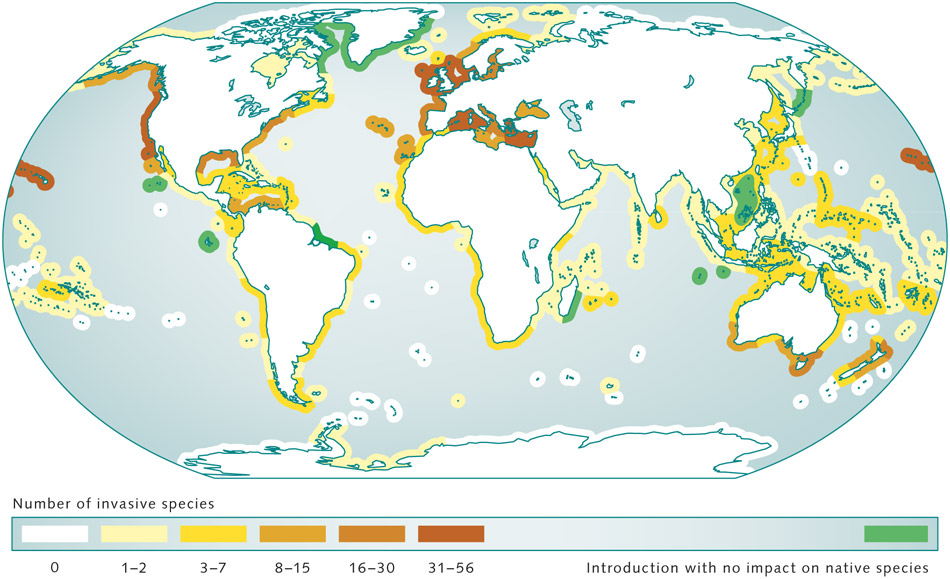 Invasive alien species (IAS) threaten human livelihoods and biodiversity globally. Increasing globalization facilitates IAS arrival, and environmental changes, including climate change, facilitate IAS establishment. Here we provide the first global, spatial analysis of the terrestrial threat from IAS in light of twenty-first century globalization and environmental change, and evaluate national capacities to prevent and manage species invasions. We find that one-sixth of the global land surface is highly vulnerable to invasion, including substantial areas in developing economies and biodiversity hotspots. The dominant invasion vectors differ between high-income countries (imports, particularly of plants and pets) and low-income countries (air travel). Uniting data on the causes of introduction and establishment can improve early-warning and eradication schemes. Most countries have limited capacity to act against invasions. In particular, we reveal a clear need for proactive invasion strategies in areas with high poverty levels, high biodiversity and low historical levels of invasion.