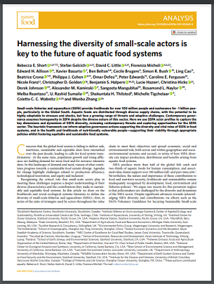 Small-scale fisheries and aquaculture (SSFA) provide livelihoods for over 100 million people and sustenance for ~1 billion people, particularly in the Global South. Aquatic foods are distributed through diverse supply chains, with the potential to be highly adaptable to stresses and shocks, but face a growing range of threats and adaptive challenges. Contemporary governance assumes homogeneity in SSFA despite the diverse nature of this sector. Here we use SSFA actor profiles to capture the key dimensions and dynamism of SSFA diversity, reviewing contemporary threats and exploring opportunities for the SSFA sector. The heuristic framework can inform adaptive governance actions supporting the diversity and vital roles of SSFA in food systems, and in the health and livelihoods of nutritionally vulnerable people—supporting their viability through appropriate policies whilst fostering equitable and sustainable food systems.