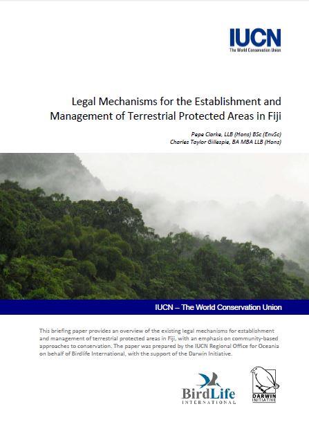 Clarke, P. Gillespie, C.T.  2009. Legal Mechanisms for the Establishment and Management of Terrestrial Protected Areas in Fiji.  IUCN. Suva, Fiji.