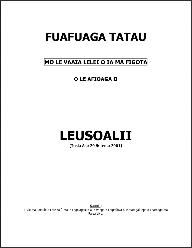 o le nuu e pei o le vasega o matai, tina ma taulelea.