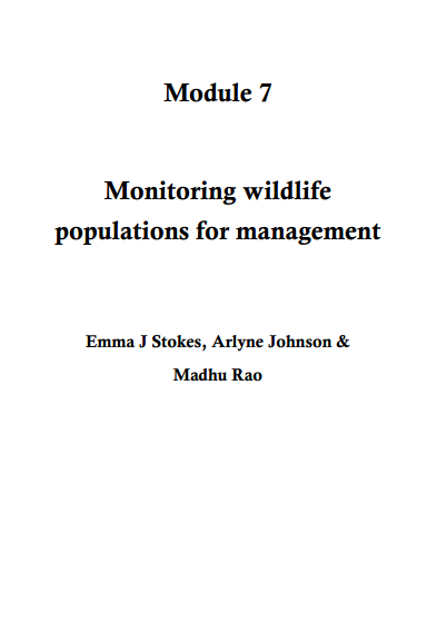Stokes, E., A. Johnson and M. Rao. 2010. Monitoring Wildlife Populations for Management. Training Module 7 for the Network of Conservation Educators and Practitioners. American Museum of Natural History and the Wildlife Conservation Society, Vientiane, Lao PDR.