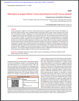 Local communities’ support for resource conservation projects are essential for their success. Nevertheless, in the Pacific Island countries, many community-based conservation (CBC) projects remain ineffective due to the lack of community members’ engagement. To better understand the motivations of local community members to support resource conservation projects; this research looks at the four community-based conservation sites in North Tarawa, Kiribati. We conducted semi-structured interviews and focus group discussions to investigate why community members support (or do not support) CBC. The findings reveal that while local community members are overall aware of the significance of resource conservation, they do not always support or participate in conservation projects. Indeed, the local community members’ motivation to participate in such projects are influenced by various factors, including their status in a household or community, village practices, the quality of community leadership, and their past experiences with similar projects. Our research also finds that community members become unsupportive with conservation projects when their daily livelihood activities are restricted by the projects. This research suggests that project organisers need to understand such factors and be strategic to retain community members’ support for the success of conservation project.