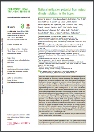 Better land stewardship is needed to achieve the Paris Agreement’s temperature goal, particularly in the tropics, where greenhouse gas emissions from the destruction of ecosystems are largest, and where the potential for additional land carbon storage is greatest. As countries enhance their nationally determined contributions (NDCs) to the Paris Agreement, confusion persists about the potential contribution of better land stewardship to meeting the Agreement’s goal to hold global warming below 2°C. We assess cost-effective tropical country-level potential of natural climate solutions (NCS)—protection, improved management and restoration of ecosystems—to deliver climate mitigation linked with sustainable development goals (SDGs).
