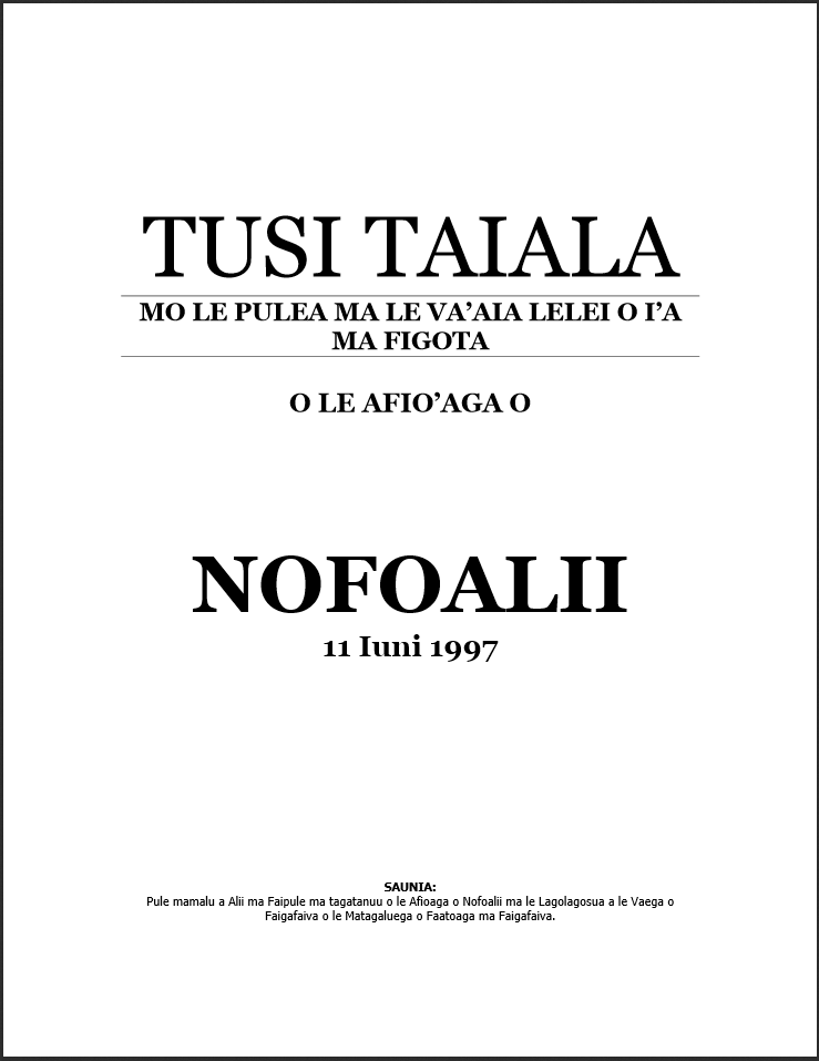 O le afioaga o Nofoalii e i le itu i matu i Sísifo o le motu o Upolu. O lona faitau aofai e tusa lea ma le 1,700 i le 1,750 tagata e aofia ai matai, tina ma tamaitai, aumaga, faapea alo ma fanau laiti. O lenei aofaiga e le o aofia ai i latou ua faimalaga atu i atunuu i fafo e aumau ma nonofo ai.