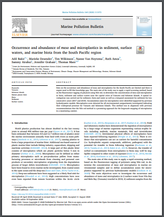 Data on the occurrence and abundance of meso and microplastics for the South Pacific are limited and there is urgent need to fill this knowledge gap. The main aim of the study was to apply a rapid screening method, based on the fluorescence tagging of polymers using Nile red, to determine the concentration of meso and microplastics in biota, sediment and surface waters near the capital cities of Vanuatu and Solomon Islands. A spatial investigation was carried out for sediment, biota and water as well as a temporal assessment for sediment for two consecutive years (2017 and 2018). Accumulation zones for microplastics were identified supported by previous hydrodynamic models. Microplastics were detected for all environmental compartments investigated indicating their widespread presence for Vanuatu and Solomons Islands. This method was in alignment with previous recommendations that the Nile red method is a promising approach for the largescale mapping of microplastics in a monitoring context.