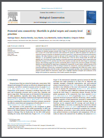 Connectivity of protected areas (PAs) is crucial for meeting their conservation goals. We provide the first global evaluation of countries' progress towards Aichi Target 11 of the Convention on Biological Diversity that is to have at least 17% of the land covered by well-connected PA systems by 2020. We quantify how well the terrestrial PA systems of countries are designed to promote connectivity, using the Protected Connected (ProtConn) indicator. We refine ProtConn to focus on the part of PA connectivity that is in the power of a country to influence, i.e. not penalizing countries for PA isolation due to the sea and to foreign lands. We found that globally only 7.5% of the area of the countries is covered by protected connected lands, which is about half of the global PA coverage of 14.7%, and that only 30% of the countries currently meet the Aichi Target 11 connectivity element. These findings suggest the need for considerable efforts to improve PA connectivity globally. We further identify the main priorities for improving or sustaining PA connectivity in each country: general increase of PA coverage, targeted designation of PAs in strategic locations for connectivity, ensuring permeability of the unprotected landscapes between PAs, coordinated management of neighbouring PAs within the country, and/or transnational coordination with PAs in other countries. Our assessment provides a key contribution to evaluate progress towards global PA connectivity targets and to highlight important strengths and weaknesses of the design of PA systems for connectivity in the world's countries and regions.