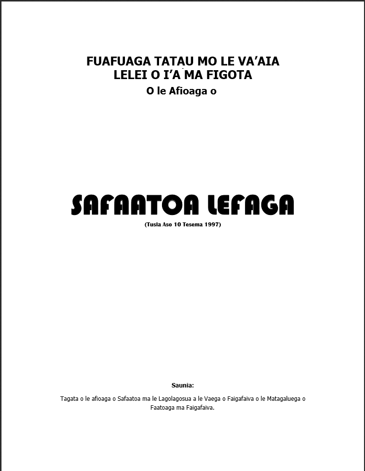 E leai se alia fagota o faaaogaina mo faigafaiva a le afioaga o Safaatoa