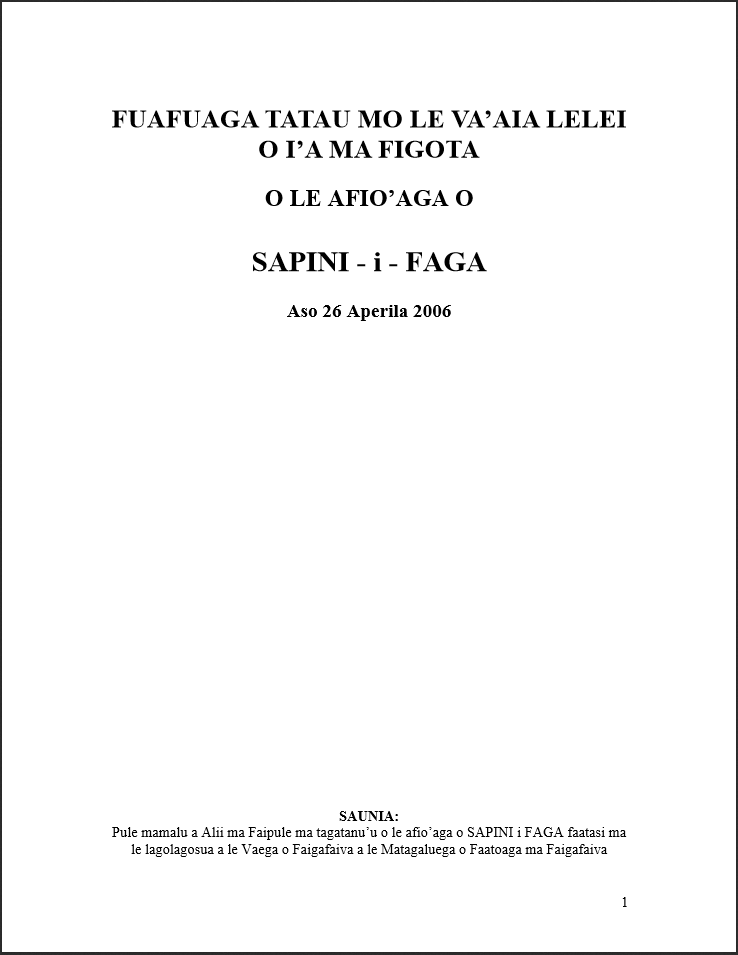 O lenei tapenaga sa saunia lava e le pule mamalu a Alii ma Faipule, ma tagatanuu o le afio’aga o Sapini faatasi ai ma ni fautuaga ma le lagolagosua a le Vaega o Faigafaiva a le Matagaluega o Faatoaga ma Faigafaiva.