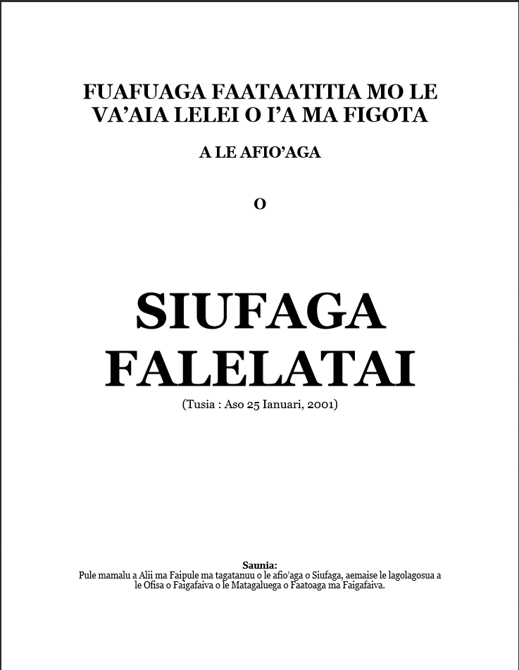 O nisi o fuafuaga o Tusi Taiala i le tele o afio’aga mo le pulea tatau ma le va’aia lelei o le siosiomaga o le gataifale e aofia ai le: