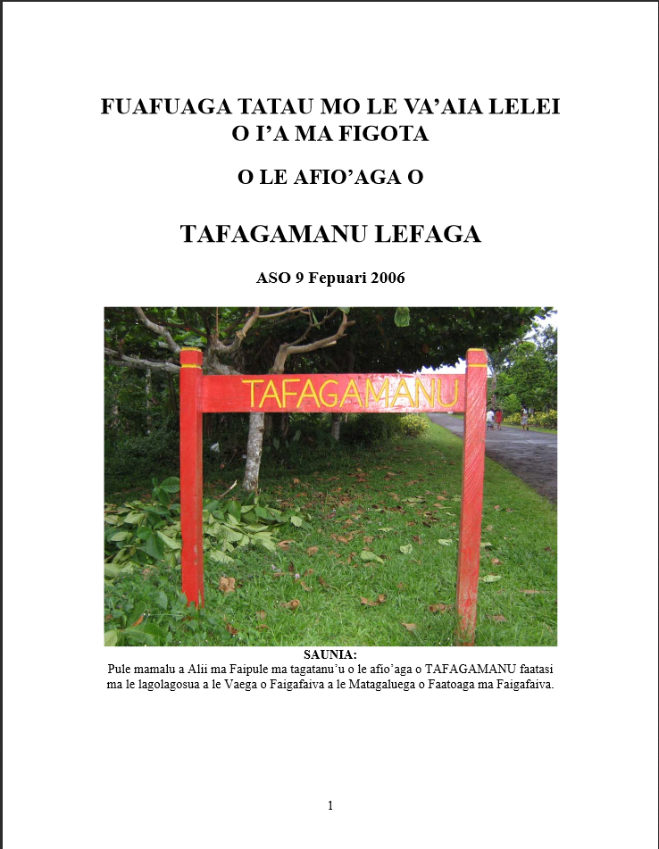 O lenei fuafuaga o le Pulega o le Si’osi’omaga o le Gataifale ma le Va’aia lelei o i’a ma figota sa saunia e Alii ma Faipule ma tagatanu’u o le afio’aga o Tafagamanu faatasi ma le lagolagosua a le Vaega o Faigafaiva o le Matagaluega o Fa’atoaga ma Faigafaiva.