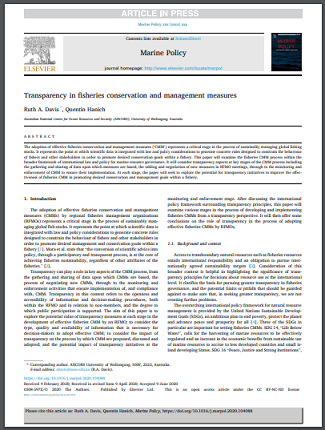 The adoption of effective fisheries conservation and management measures (‘CMM’) represents a critical stage in the process of sustainably managing global fishing stocks. It represents the point at which scientific data is integrated with law and policy considerations to generate concrete rules designed to constrain the behaviour of fishers and other stakeholders in order to promote desired conservation goals within a fishery. This paper will examine the fisheries CMM process within the broader framework of international law and policy for marine resource governance. It will consider transparency aspects at key stages of the CMM process including the gathering and sharing of data upon which measures are based, the tabling and negotiation of new measures in RFMO meetings, through to the monitoring and enforcement of CMM to ensure their implementation. At each stage, the paper will seek to explore the potential for transparency initiatives to improve the effectiveness of fisheries CMM in promoting desired conservation and management goals within a fishery.