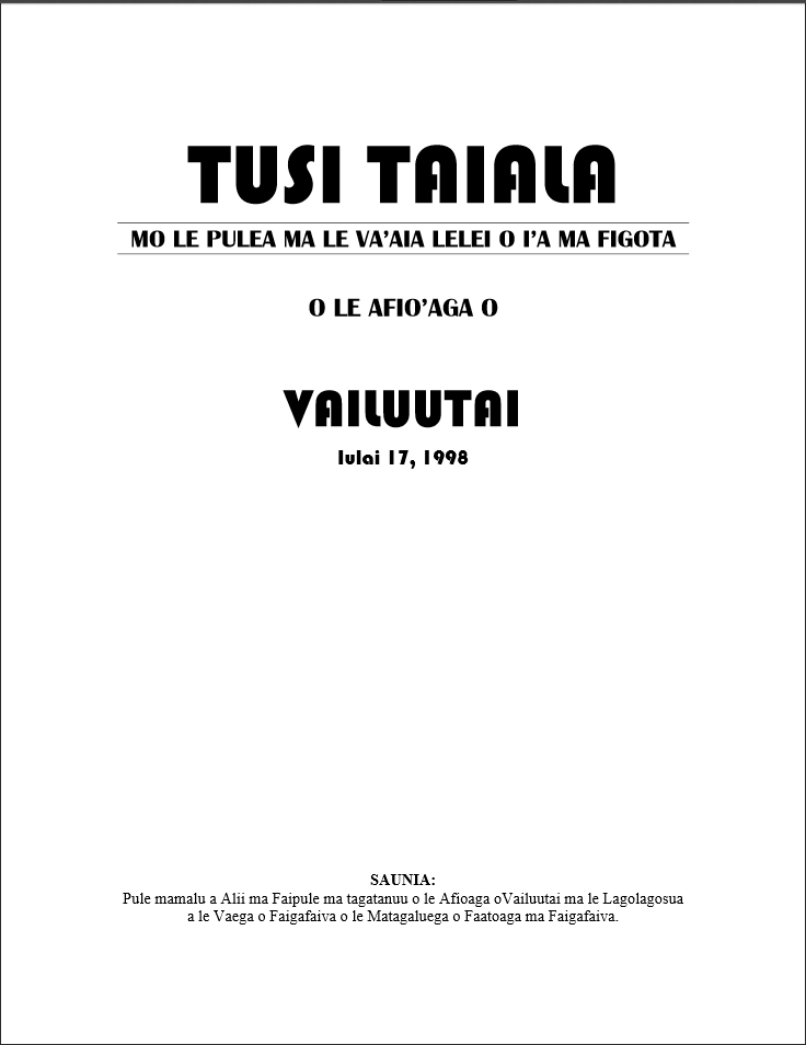 O le polokalame o le faasaoina o le gataifale na amata mai e le ofisa o faigafaiva i le tausaga 1995. O le faamoemoe o le polokalame ina ia toe tapue mai le tamaoaiga o le gataifale ma puipuia ai le siosiomaga. O taualumaga o le polokalame e aofia ai le soalaupuleina ma le fausiaina o se Tusi Taiala. O lenei Tusi Taiala o loo tamauina ai fuafuaga faataatitia a le afioaga ma le ofisa o faigafaiva. O nei fuafuaga faataatitia e unaia ai le pulea lelei ma fuafua tatau o le faaaogaina o le tamaoaiga o Vailuutai.