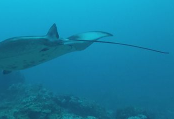 A pregnant reef manta ray (Mobula alfredi) has been spotted swimming far offshore in the Eastern Pacific Ocean, near Cocos Island, which is a long way from the creature's traditional home. Click on the link below to read the full article.