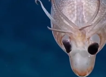 The team aboard the Exploration Vessel Nautilus team used a camera to  enjoy a close-up with a see-through piglet squid (Helicocranchia sp.), named for its large siphon that looks like a snout. Click on the link below to read the full article.