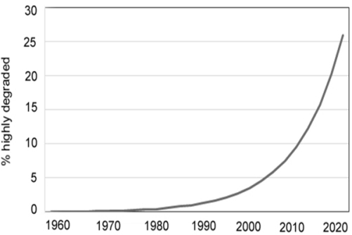 Figure: Exponential rise in degradation of the protected area network in Africa