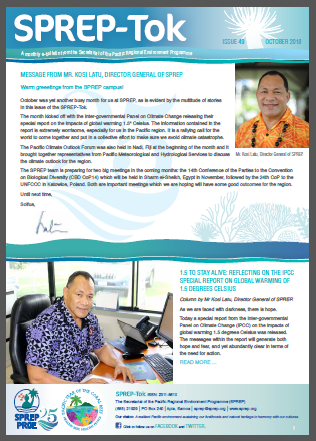 Here is SPREP-Tok, Issue 49 covering the month of October 2018. Click on the link below to access the newsletter.