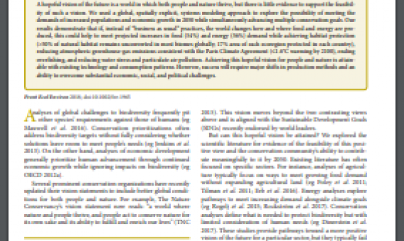 A hopeful vision of the future is a world in which both people and nature thrive, but there is little evidence to support the feasibility of such a vision. Click on the link below to access the full paper.